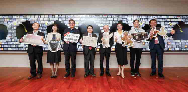 牛牛游戏携手创利空间为故宫建置的智慧文物互动导览墙及轮播墙,,,,今日正式启用。。。。(左四:牛牛游戏新事业暨投资管理总部副总经理杨本豫、、、右四:故宫博物院院长吴密察、、、、右三:太极影音董事长黄宝云)